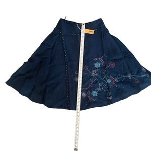 New with tags LUCY Collection faux suede skirt with embroidered flowers and metal studs. Knee length size small.