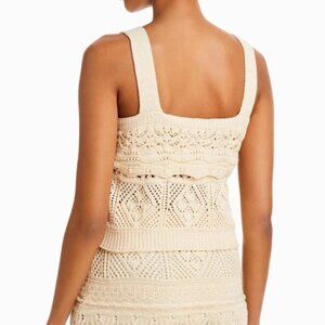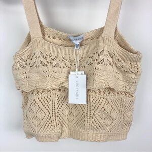 NWT Lucy Paris Beige Chunky Knit Crochet Lace Crop Top Square Neck Tank Top Tee