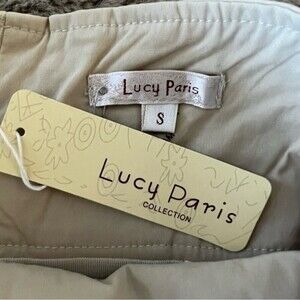 NWT Lucy Paris High Waisted Ruched Beige Pencil Skirt With Bow front Detail SZ S