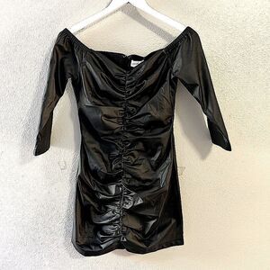 NWT Lucy Paris Leather Dress Off Shoulder • Ruched •Body Con •sexy/date/party• M