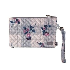 There is a zipper pocket on the back for your cell phone. Inside has an open and a zipper pocket.