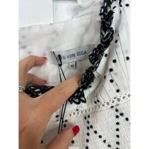 NWT Lug Von Siga Embroidered Scallop Sienna Top Off White and Black Size: 8