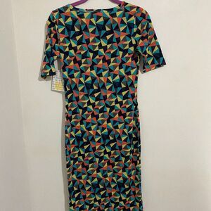NWT Lula Roe Julia Womens Dress Size XXS Dress is 96% Polyester 4% Spandex Multi Color: Black Blue Yellow Pink