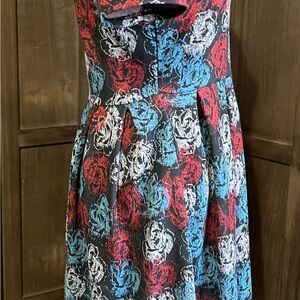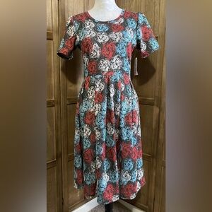 NWT Lula Roe red white and blue floral knee length dress with pockets