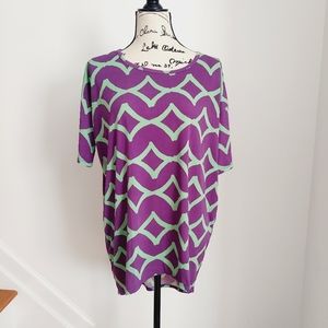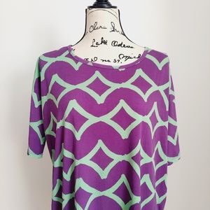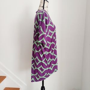 NWT LulaRoe Irma Purple Green Tunic Top Short Sleeve XS