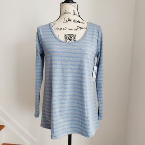 NWT LulaRoe Lynnae Gray Blue Striped Tunic Top Long Sleeve S