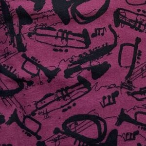 ** This color was hard to photograph. The picture may be a tad brighter than they are in real life depending on your screen settings. They are a cozy darker tone of mulberry wine background with black instruments. ***