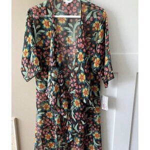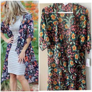 NWT LulaRoe Shirley NEW Long Kimono Jacket Sheer Unicorn Floral Print Blue Sz S