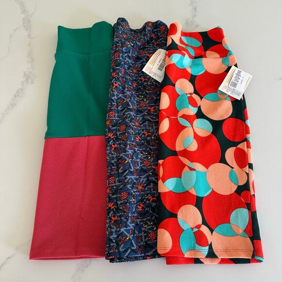 Get ready to add some fun and vibrant skirts to your wardrobe with this set of three LulaRoe skirts! These skirts are all brand new with tags and in a size small. Perfect for mixing and matching, these skirts will bring a pop of color and style to any outfit. Don't miss out on this fantastic deal!