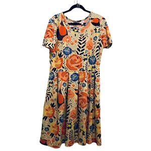 NWT Lularoe Amelia dress 3XL 3X fit & flare floral rose bird garden nature