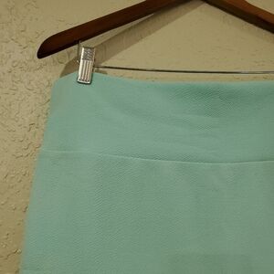 New with tags. Lularoe Cassie Pencil Light Blue Stretchy Skirt 2X. Polyester and spandex blend. Measurements in photos.