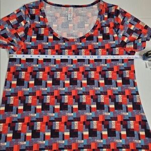 NWT Lularoe Classic T, sz: XS red cream and blue block geometric print
