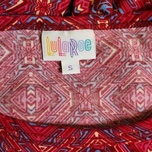 NWT Lularoe Julia, maroon, blue, and cream geometric pattern, size S