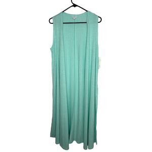 Lularoe Long Cardigan Sweater Women SZ SM Runs Large Duster Cover Up Travel Comfort Office Brand new with tags still attached. Simply comfortable Lularoe line. Lularoe "Joy" Sleeveless long cover up in light aqua with white. Slits up both sides for a flowing look. Fabric is soft and stretchy. Fabric content 58% rayon 38% polyester 4% spandex. Packable wrinkle resistant