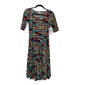 NWT Lularoe Nicole Dress XS 0 2 Retro Cassette Tape 80s 90s vibrant colorful NEW
