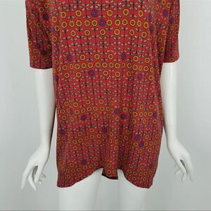 NWT Lularoe Womens Size XS Red Floral Print Irma Tunic Top Hi Low Short Sleeve