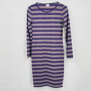NWT Lularoe Size XS Purple Striped Long Sleeve Debbie Sheath Dress Midi