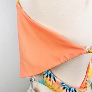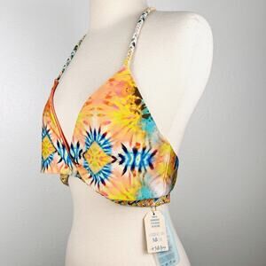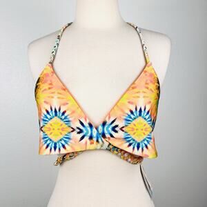NWT Luli Fama XL Crossover Halter Bikini Top Reversible Sol Multicolored Print