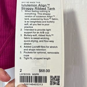 NWT Lululemon Align Strappy Ribbed Tank Top in Magenta size 2