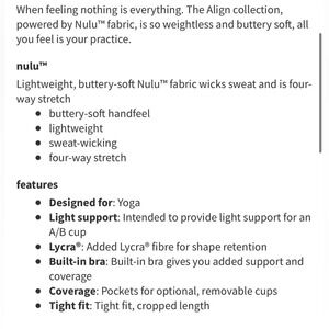 When feeling nothing is everything. The Align collection, powered by Nulu™ fabric, is so weightless and buttery soft, all you feel is your practice.