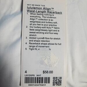 NWT Lululemon Align Waist-Length Racerback Tank Top - 4 White