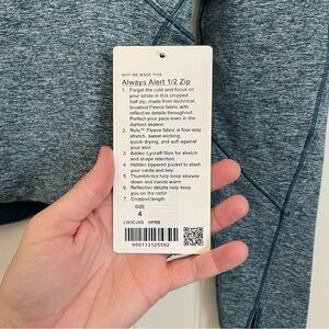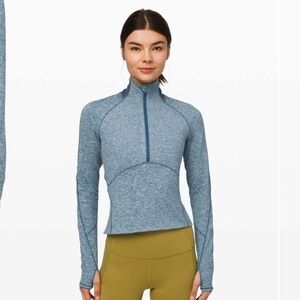 NWT Lululemon Always Alert 1/2 Zip Heathered Petrol Blue size 4