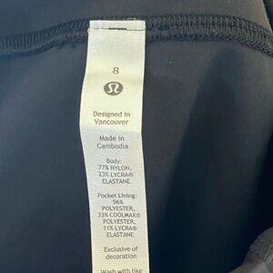 These black bike shorts from Lululemon Athletica feature a high-waisted design and a form-fitting compression style, perfect for workouts or casual athleisure. The sleek, minimalistic look and smooth fabric make them a versatile addition to any activewear collection.