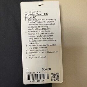 NWT Lululemon Athletica Wunder Train Black High-Waisted Bike Shorts Size 8