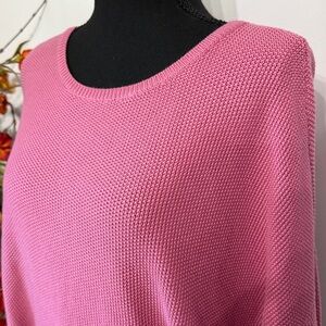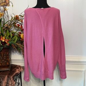 In new excellent condition. Still current from this season. Open crossover detail in the back with a touch of cashmere yet it’s still machine washable. Hidden thumb holes with a relaxed fit and hip length this long sleeve cable waffle knit style sweater is so soft and amazing. Pit to pit flat across is 29 inches with stretch to 42 inches making it very oversized and slouchy. Length of sweater is 29 inches. Perfect for a post workout or a crisp fall walk, perfect to wear over tank tops or long line sports bras and even base layers for a truly warm feel.