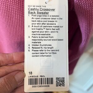 NWT Lululemon Cashlu Crossover Back Waffle Knit Long Sleeve Cashmere Sweater 18