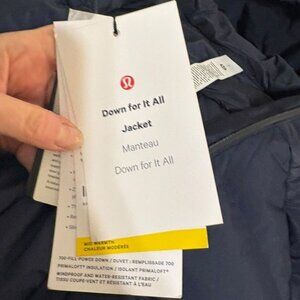 Looking for a chic and functional way to stay warm on your next adventure? Look no further than this Lululemon Down For It All Jacket in gorgeous navy blue color.