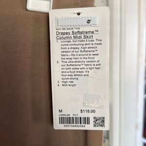 NWT Lululemon Drapey Softstreme Column Midi Skirt Sz Medium Filbert Tan
