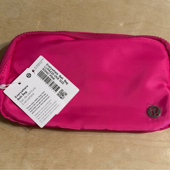 This bold and vibrant Lululemon Everywhere Belt Bag in Sonic Pink makes a fun statement. Features water-repellent fabric, a matching pink logo strap, and multiple compartments for easy organization. Lightweight, stylish, and ideal for daily use or travel.