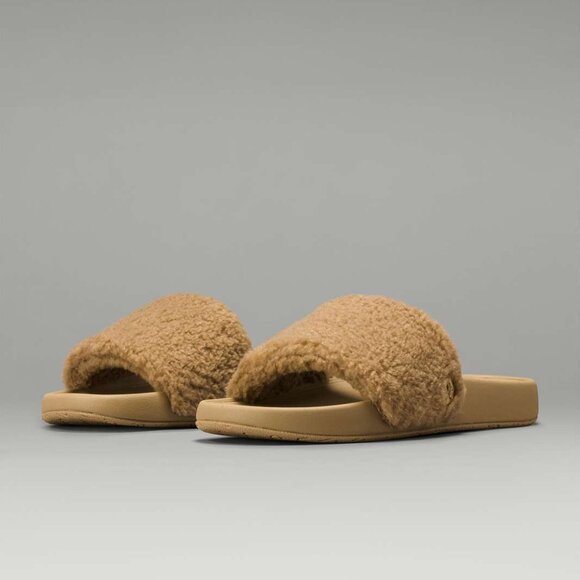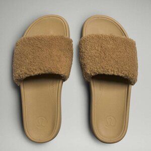 NWT Lululemon Fleece Restfeel Slide, Sz 9, Filbert Tan/Gold