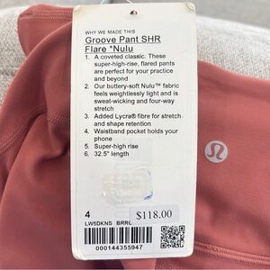 NWT Lululemon Groove Pant SHR Flare Nulu Size 4 In Brier Rose