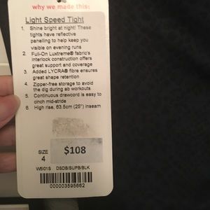 NWT Lululemon Light Speed Tight 4 Reflective