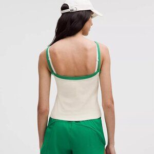 NWT Lululemon Organic Cotton High-Neck Ringer Tank Light Ivory/Raceway Green - L