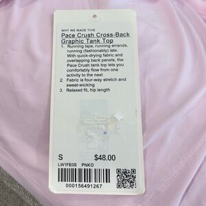 NWT Lululemon Pace Crush Cross Back Graphic Tank Top In Pink Organza Size Small
