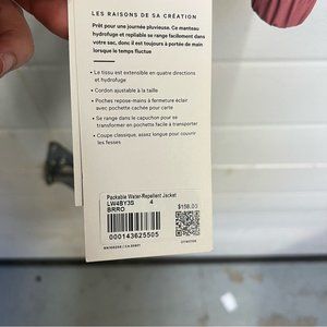 NWT Lululemon Packable Water-Repellent Jacket - Brier Rose