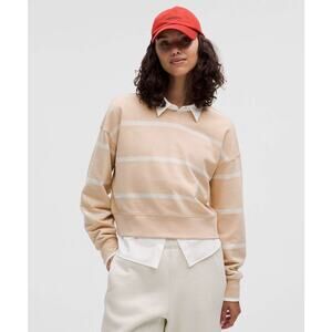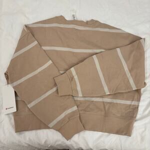 NWT Lululemon Perfectly Oversized Cropped Crew Stripe Cafe Au Lait White Opal