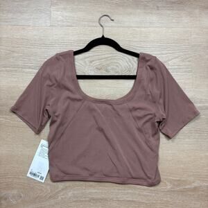 New with tags. This short sleeve's square neckline will conceal your bra for effortless layering over your workout clothes and under anything else. This textured version of our revered Luxtreme® fabric offers all the same technical properties as the original. With a rib-like outer finish and a smooth surface next to skin, it softly hugs the body for a flattering fit that flexes with every move
