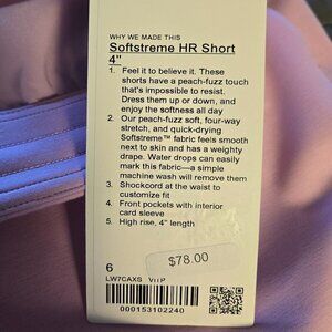 NWT Lululemon Softstreme High-Rise Short 4" size 6