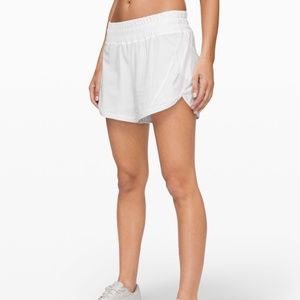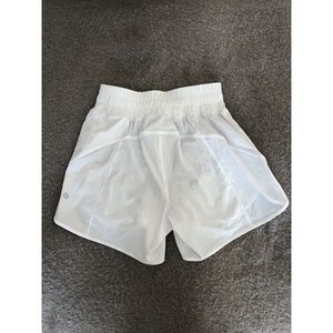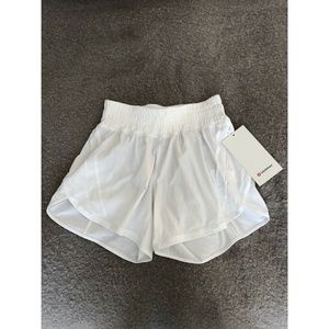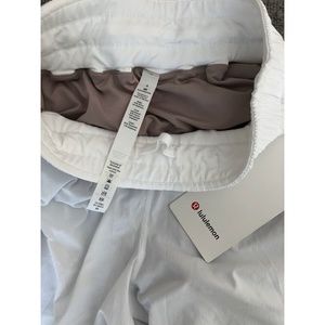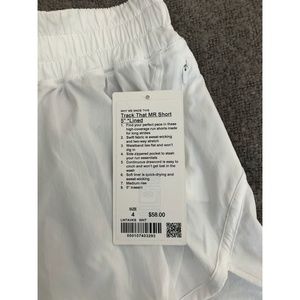Lululemon Track That Short *5" in the color "White" size 4. Shorts are new with all tags and labels still attached and have never been worn.