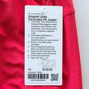 NWT Lululemon Women's Adapted State Perforated HR Jogger in Red Glow Size 14