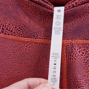 Tags: Lululemon leggings, Wunder Train leggings, high rise leggings, 25 inch leggings, crackle print leggings, size 6 leggings, NWT Lululemon, workout leggings, athleisure wear, activewear, yoga pants, moisture wicking, lululemon sz 6, lululemon orange leggings, gym wear, compressive leggings, lululemon training leggings, stylish activewear