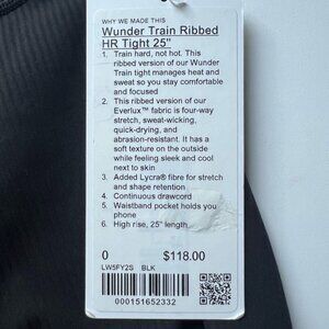 NWT Lululemon Wunder Train Ribbed High Rise Tight 25” Size 0 Black