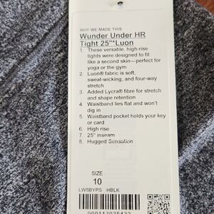 NWT Lululemon Wunder Under High-Rise Tight 25", Heathered Black, Size 10, W5BYPS