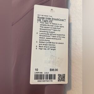 NWT Lululemon Wunder Under SmoothCover High-Rise Tight 25" Size 10 Lavender Lux