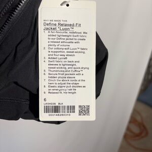 NWT Lululemon define relaxed, fit jacket * Luon size 6 black