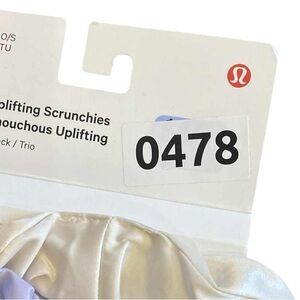 NWT Lululemon uplifting scrunchies 3pk LIGHT IVORY/LAVENDER FROST/TRUE NAVY